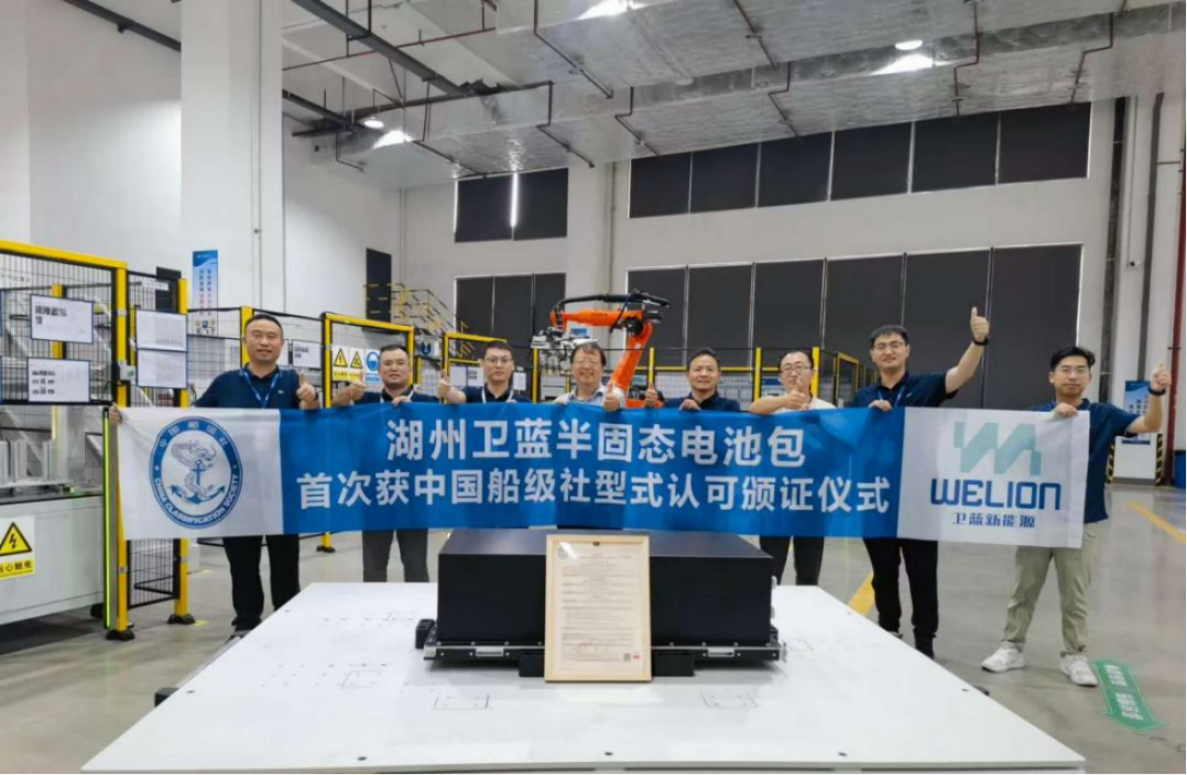 湖州卫蓝半固态电池包获中国船级社首张型式认可证书, 船舶电动化驶入快速发展航道